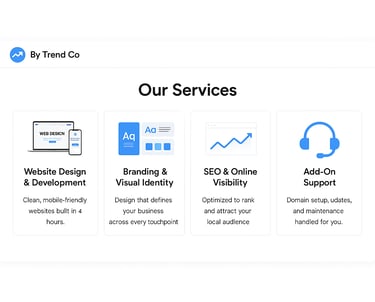 Best for: barbershops, beauty studios, cleaning businesses, cafés, and local brands that want a professional online presence.